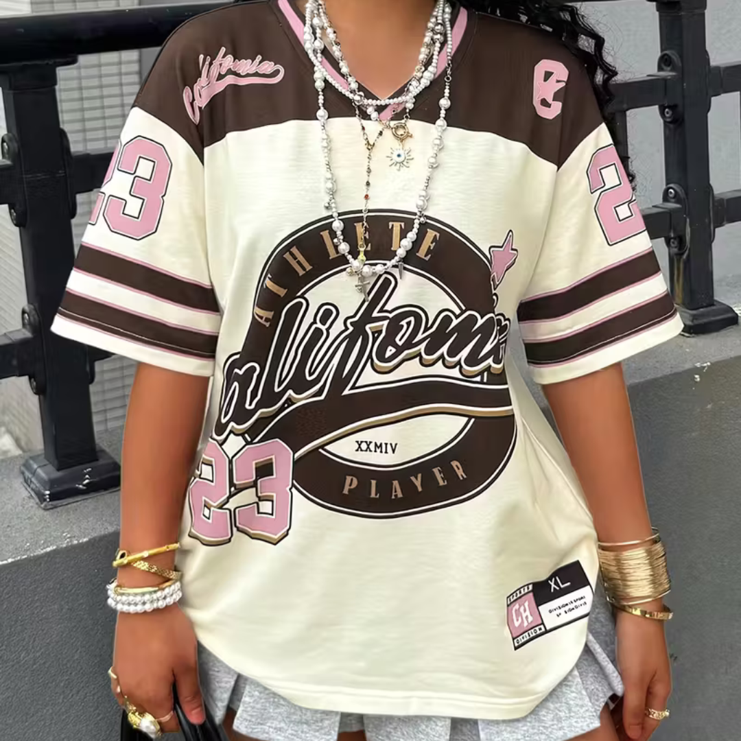 Women’s Y2K-Inspired V-Neck Sports Jersey T-Shirt